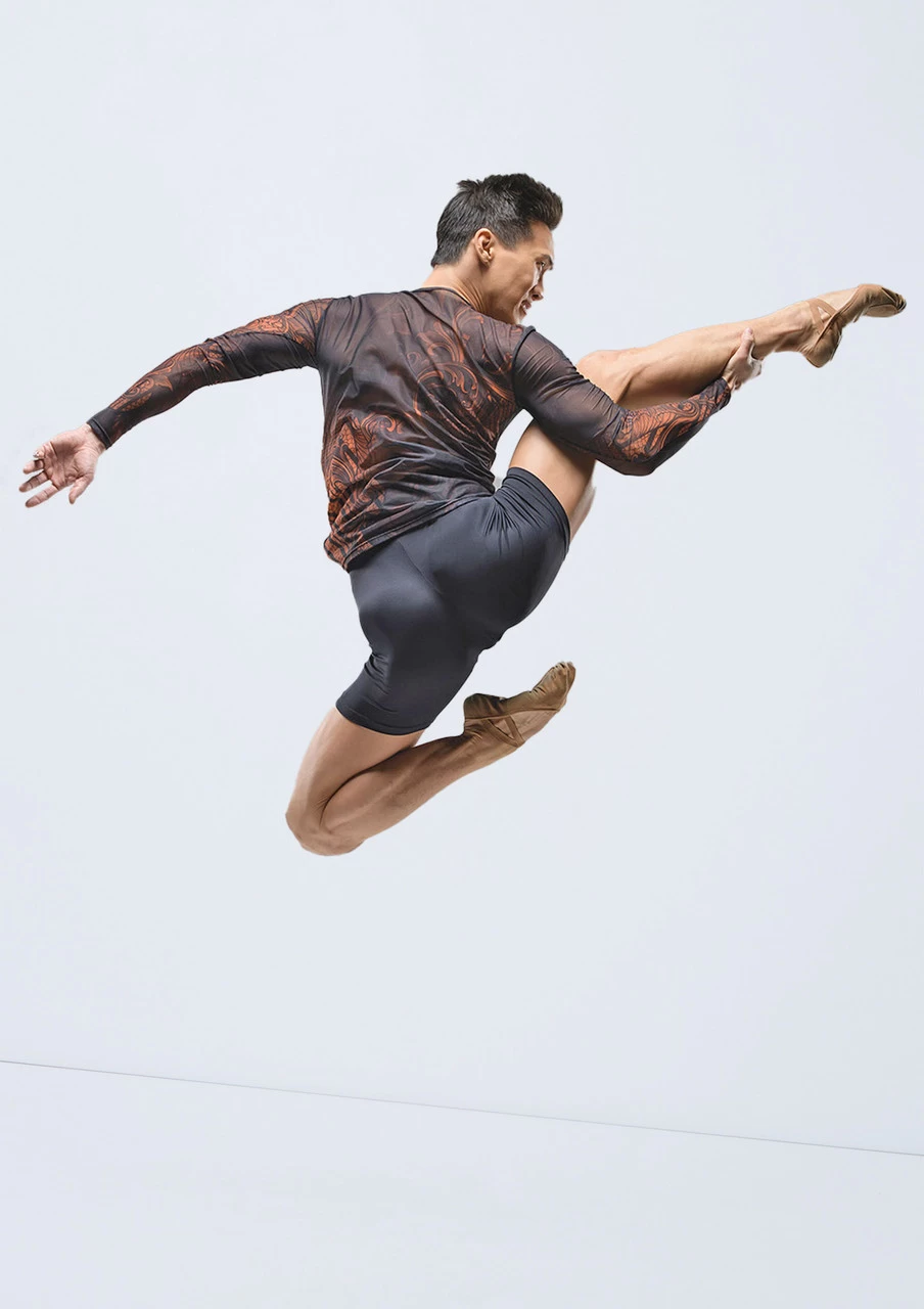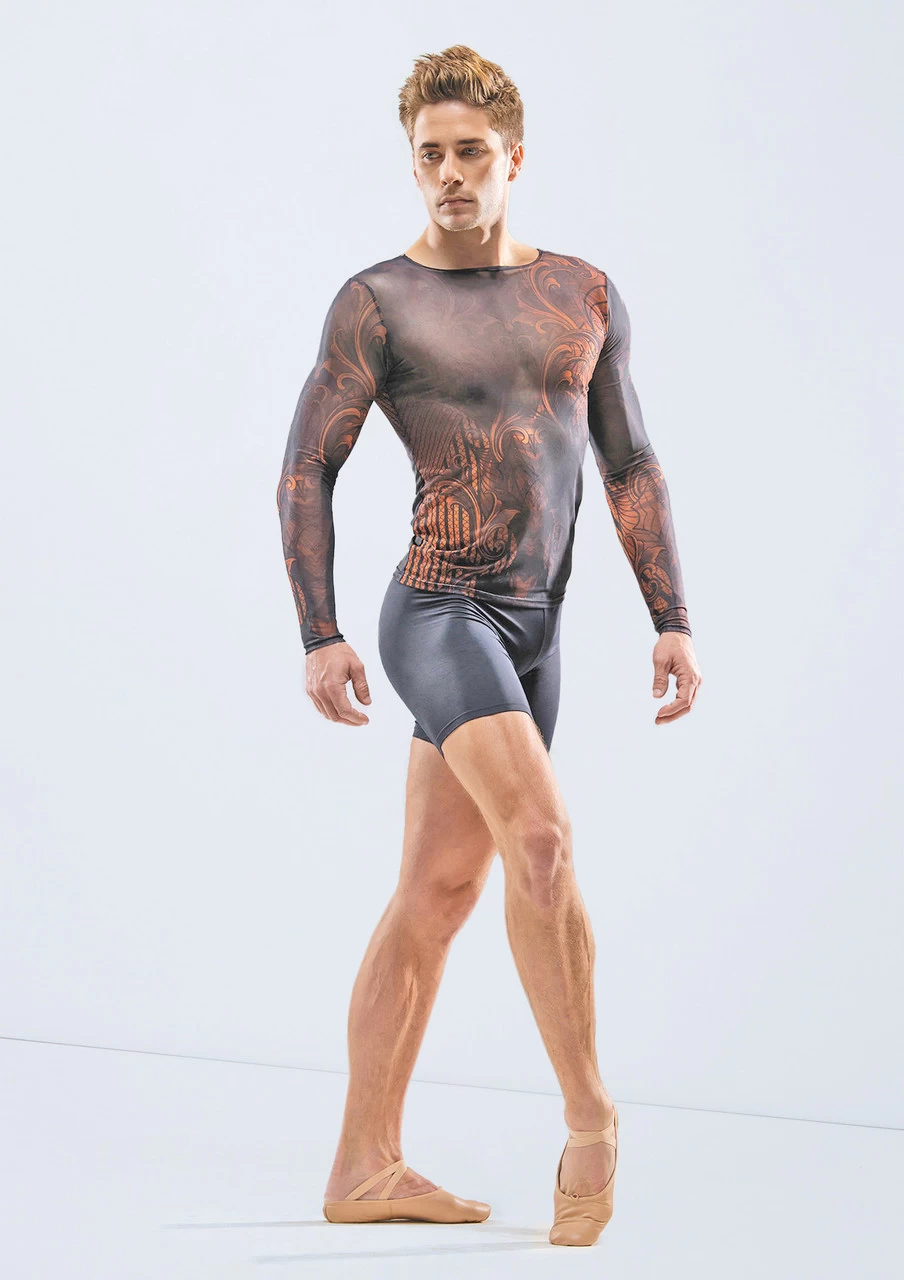 Leave a lasting impression in the Luca long sleeve top. The stand-out bronze print glistens as you move through your performance. Made from four-way stretch mesh to offer breathability and keep you cool as you dance. The fitted look accentuates your lines and compliments the bold print.