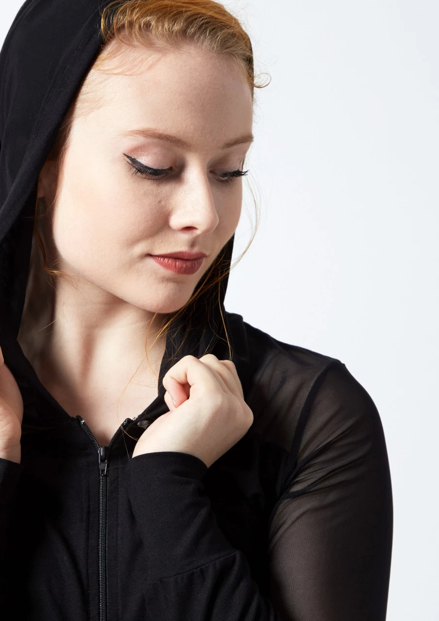 Step up your warm up wear with this Ballet Rosa hoodie. The zip up style means you can easily slip it on and off and the soft jersey material makes it perfect for warming up. Soft mesh on the hood and upper sleeves of the hoodie adds a modern twist.