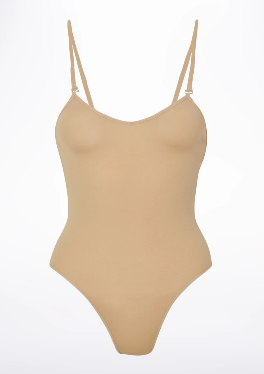 Low back nude leotard for use as underwear or as a foundation for costuming.