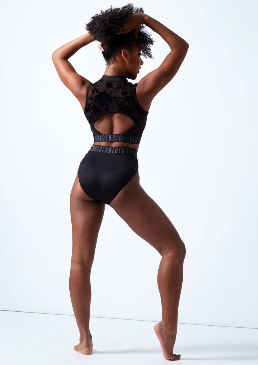 A bold Bloch logo stands out in silver writing as a tape hem on the waistband on these dance briefs. The tape hem gives a sporty edge to this simple seeming pair of dance shorts. They’re elasticated at the waist and made of a stretchy fabric to give you a secure, comfortable fit. The high waisted style is a flattering choice for dance that adds a little bit of fashion to your look. Pair with matching Remy crop top by Bloch.