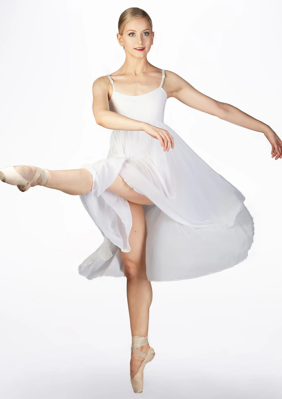 A beautiful new empire leotard dress from Capezio! The georgette material offers stunning movement and shape while dancing, and the Cotton Lycra body makes the dress secure and comfortable.