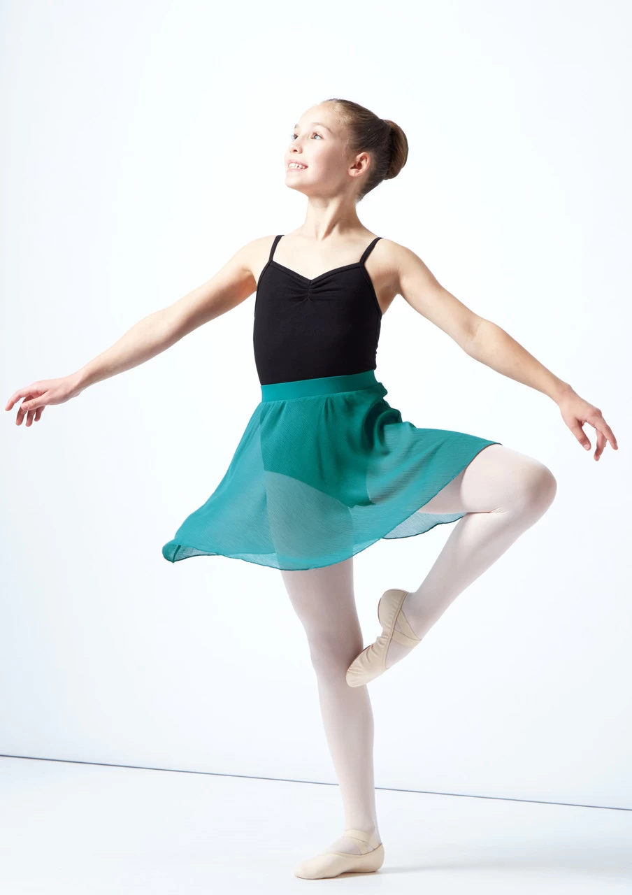 Switch up your look for class with this flowing lyrical-style pull on skirt. We’d wear this skirt over a leotard or a matching crop and briefs co-ord!