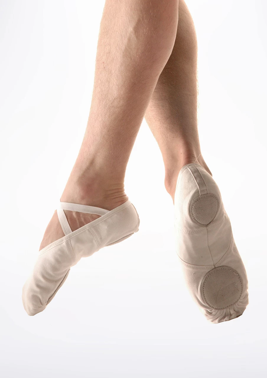 White canvas ballet shoes especially designed to fit a man’s foot. High quality dance shoes to suit either the beginner or advanced dancer.