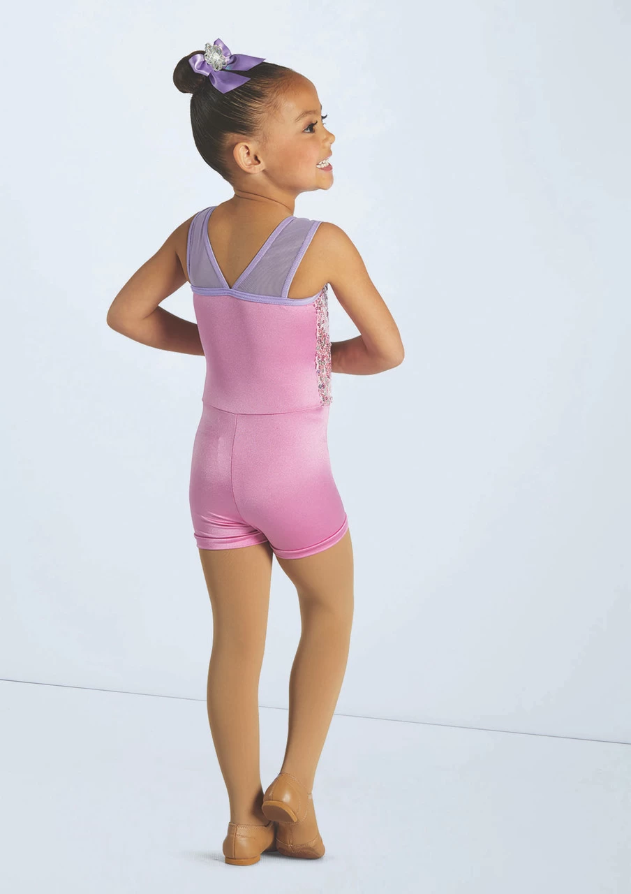Pull-on tutu is multicolor tricot with floral gem satin bow