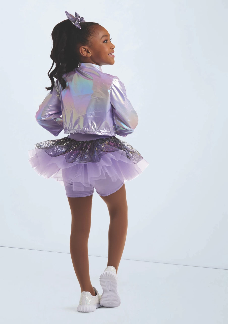 Two piece costume includes jacket and biketard