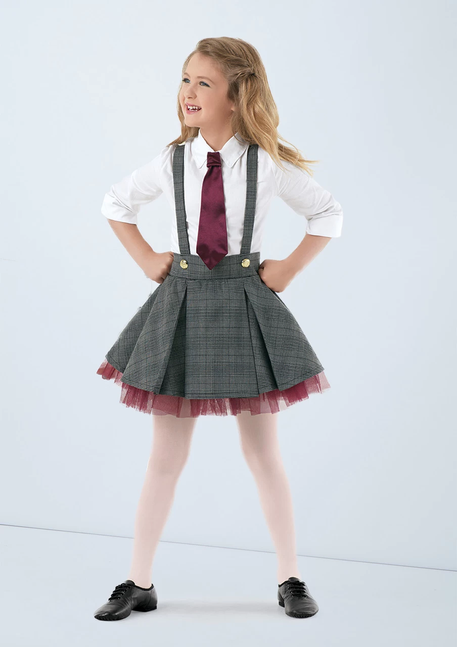 This two piece school girl inspired costume is perfect for an upbeat school-related number. The cotton snap front shirt and plaid skirt create a fun take on the classic school uniform. Wear the included tie to complete the look.