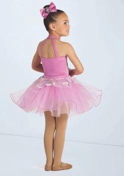 Pastel floral sequin front bodice overlay and petal top skirt