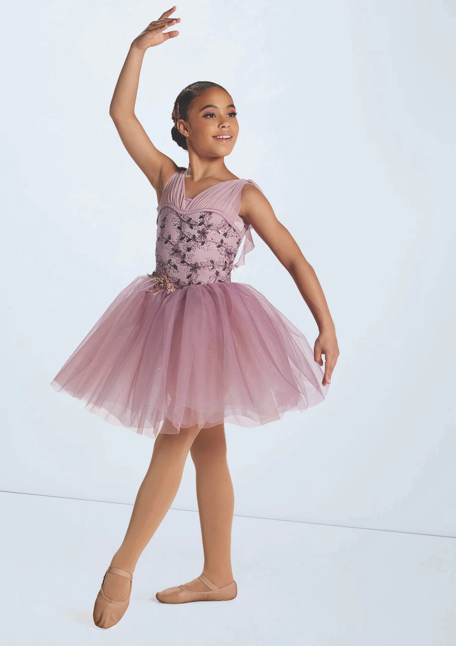 Floral glitter appliqué tacked at the waist