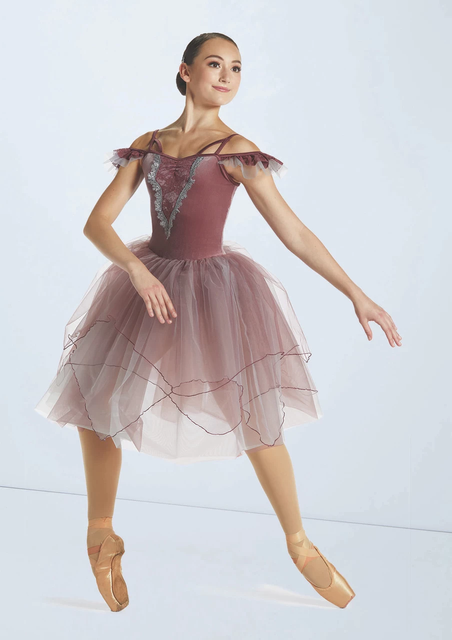 Off-the-shoulder ruffle sleeves of floral lace and mesh